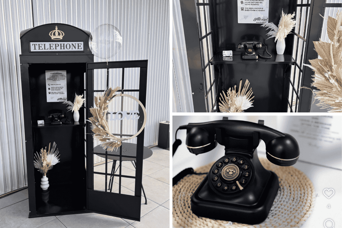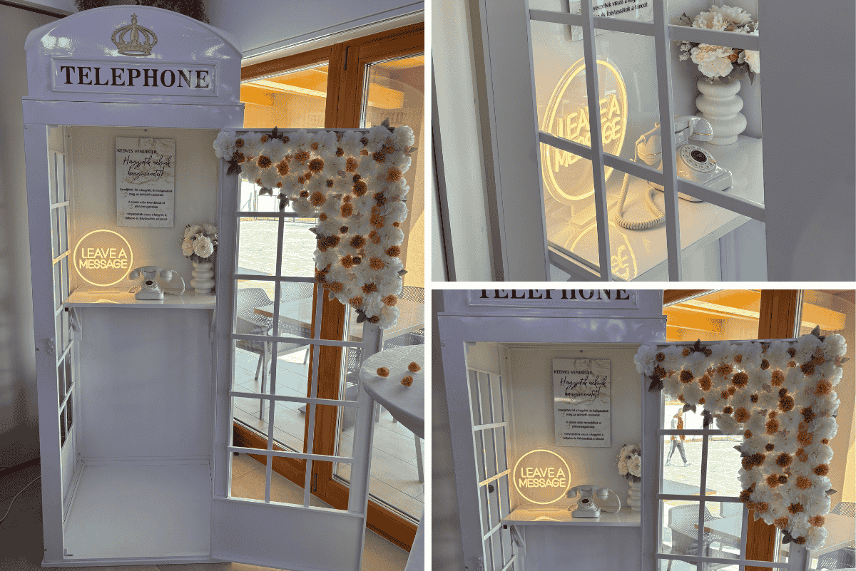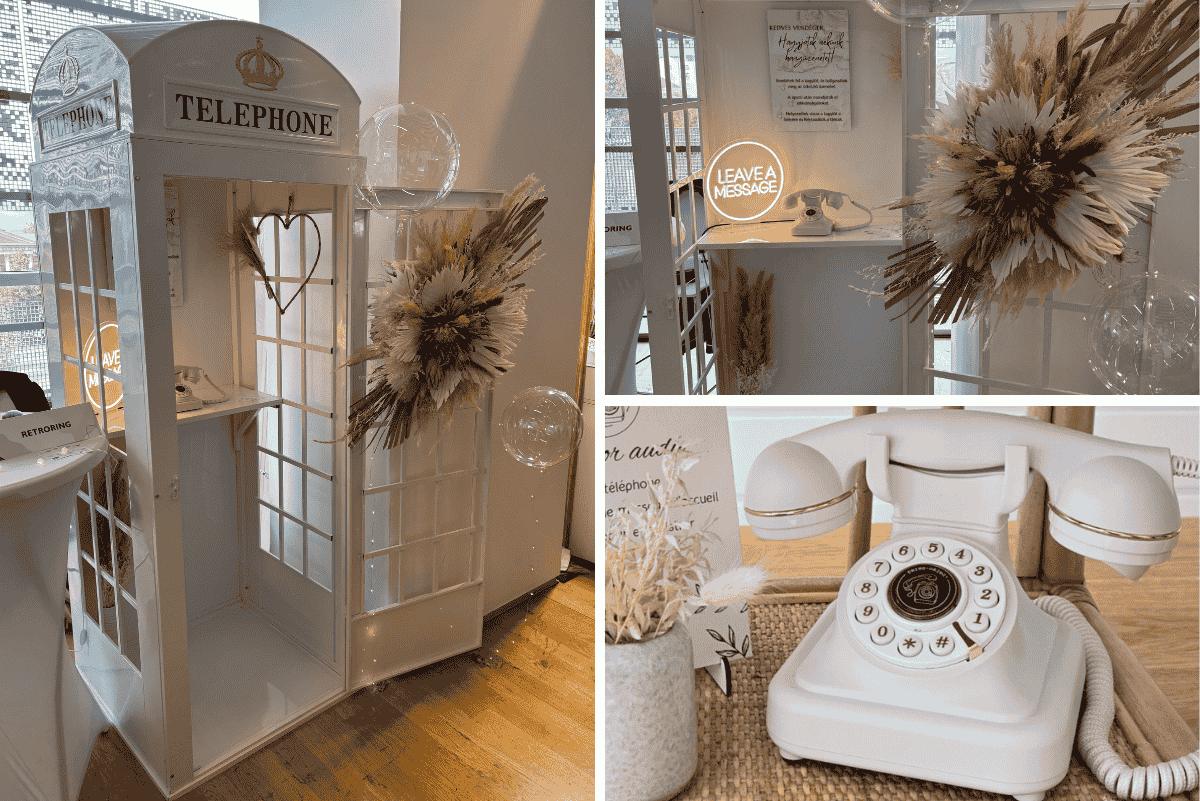 Hangüzenetek a nagy napra. Egyedi esküvői dekoráció, retro telefonfülkék és telefonos vendégkönyvek, hogy a legszebb pillanatok örökre megmaradjanak.